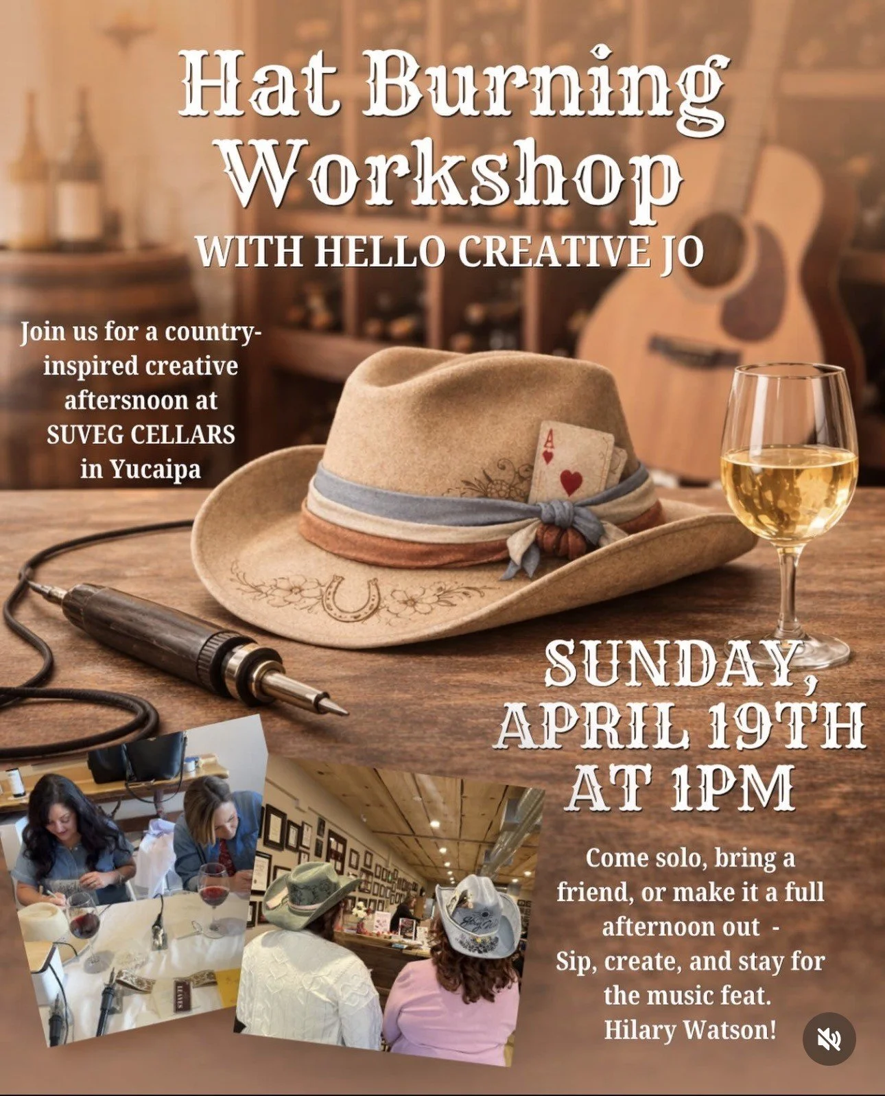 This hat burning class will be country inspired to bring in the Stagecoach festival vibes! Live music to follow by the one and only, Hilary Watson. In this guided hands on experience, you’ll design and burn your own one-of-a-kind hat using a heat tool, then finish it off with curated embellishments at the trim bar.