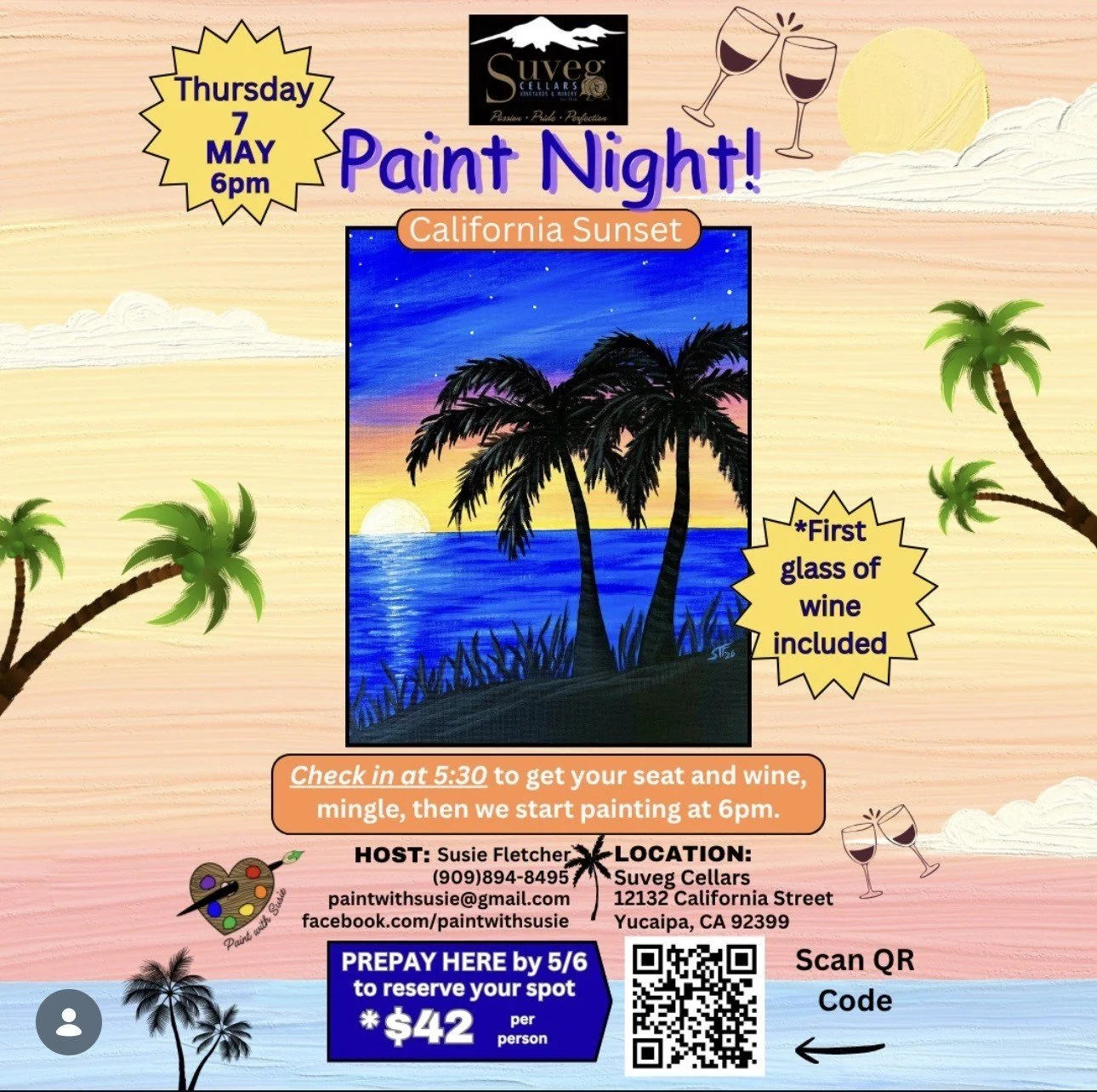 Paint and Sip with Susie Thursday, May 7, 2026 6:00 PM 8:00 PM 18:00 20:00 Google Calendar ICS Susie is back for our monthly paint night! first glass of wine included.